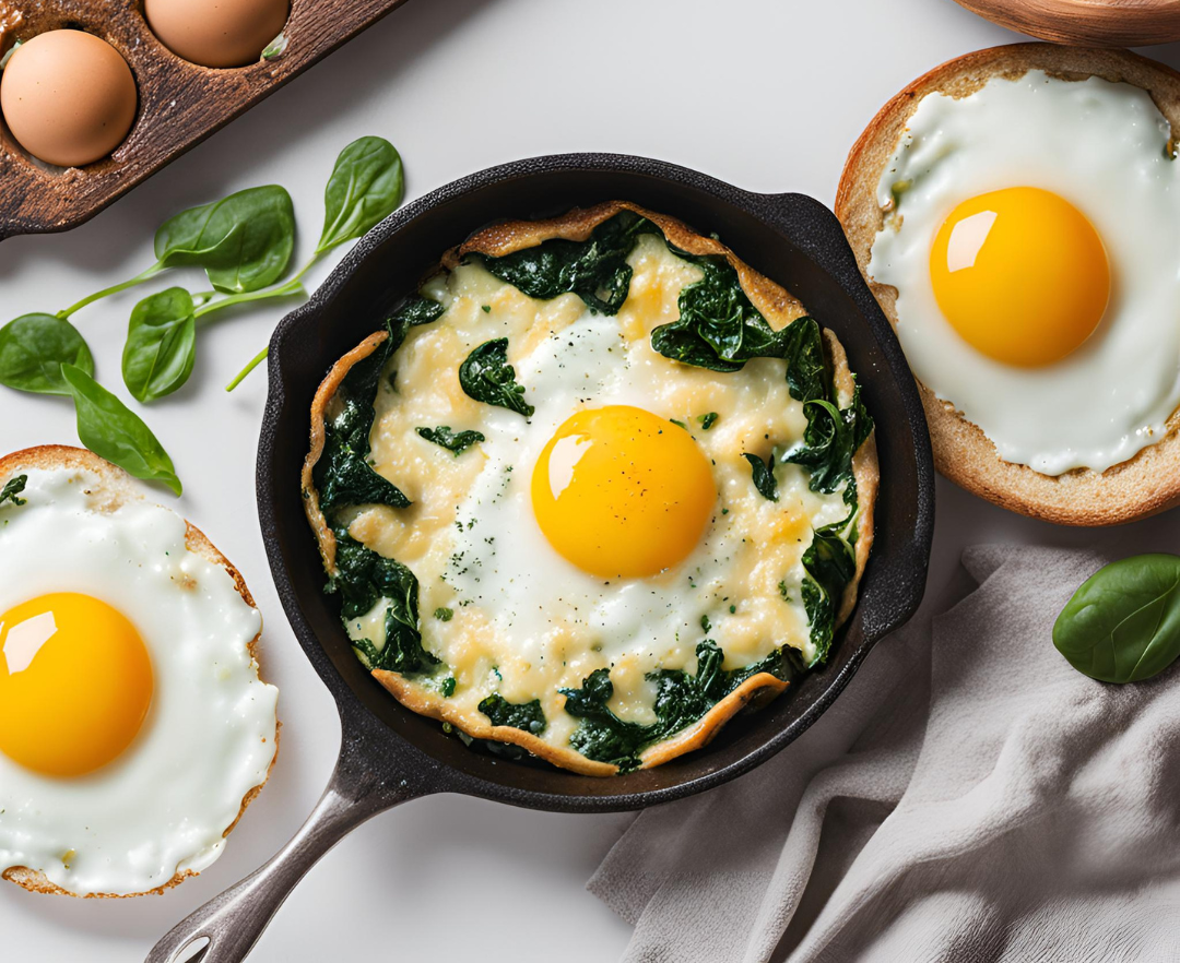 Friselle al forno con uova e spinaci